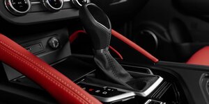 • Отделка сидений экокожей черного цвета с красной прострочкой