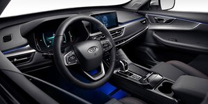 • Центральная консоль черного цвета, вставка из эко-кожи с прострочкой