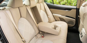 Значительно улучшились и технические характеристики Toyota Camry. Передняя подвеска типа «Мак-Ферсон» стала не только значительно легче, но и жестче на 15 процентов. Также японские инженеры решили улучшить показатели шумоизоляции за счет использования более толстой накладки задней полки. Точная цена на Тойота Камри будет известна после выбора подходящей комплектации, а также мотора и трансмиссии.