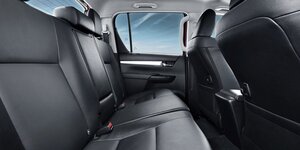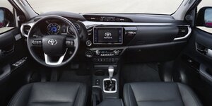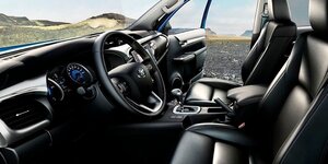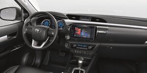 Салон пикапа Хайлюкс нового поколения отличается лаконичным и современным дизайном. Сочетание высококачественных материалов отделки и инновационных технологий делает его очень уютным местом, где хочется находиться как можно дольше. Внутри авто имеется все необходимое для приятной поездки: эргономичные кресла с широким диапазоном регулировок и функцией обогрева (дополнительная опция), кожаное рулевое колесо, регулируемое по наклону и вылету, а также охлаждаемый перчаточный ящик, климат-контроль и фирменный информационно-развлекательный комплекс, позволяющий слушать любимую музыку и оставаться на связи, не отвлекаясь от вождения.